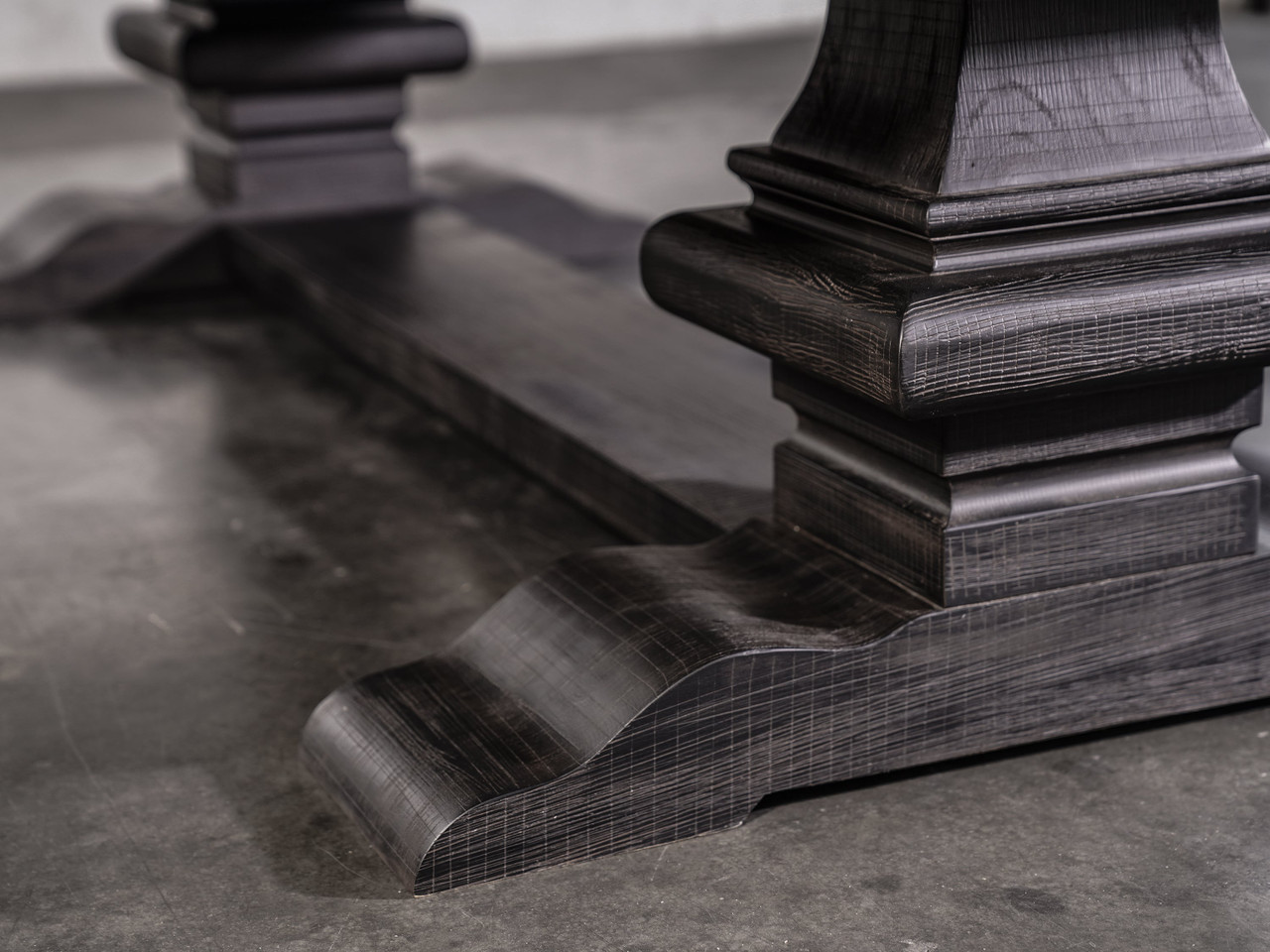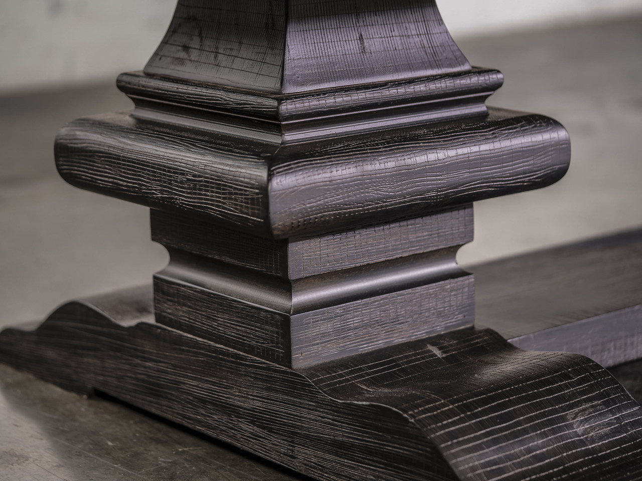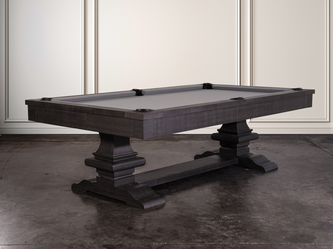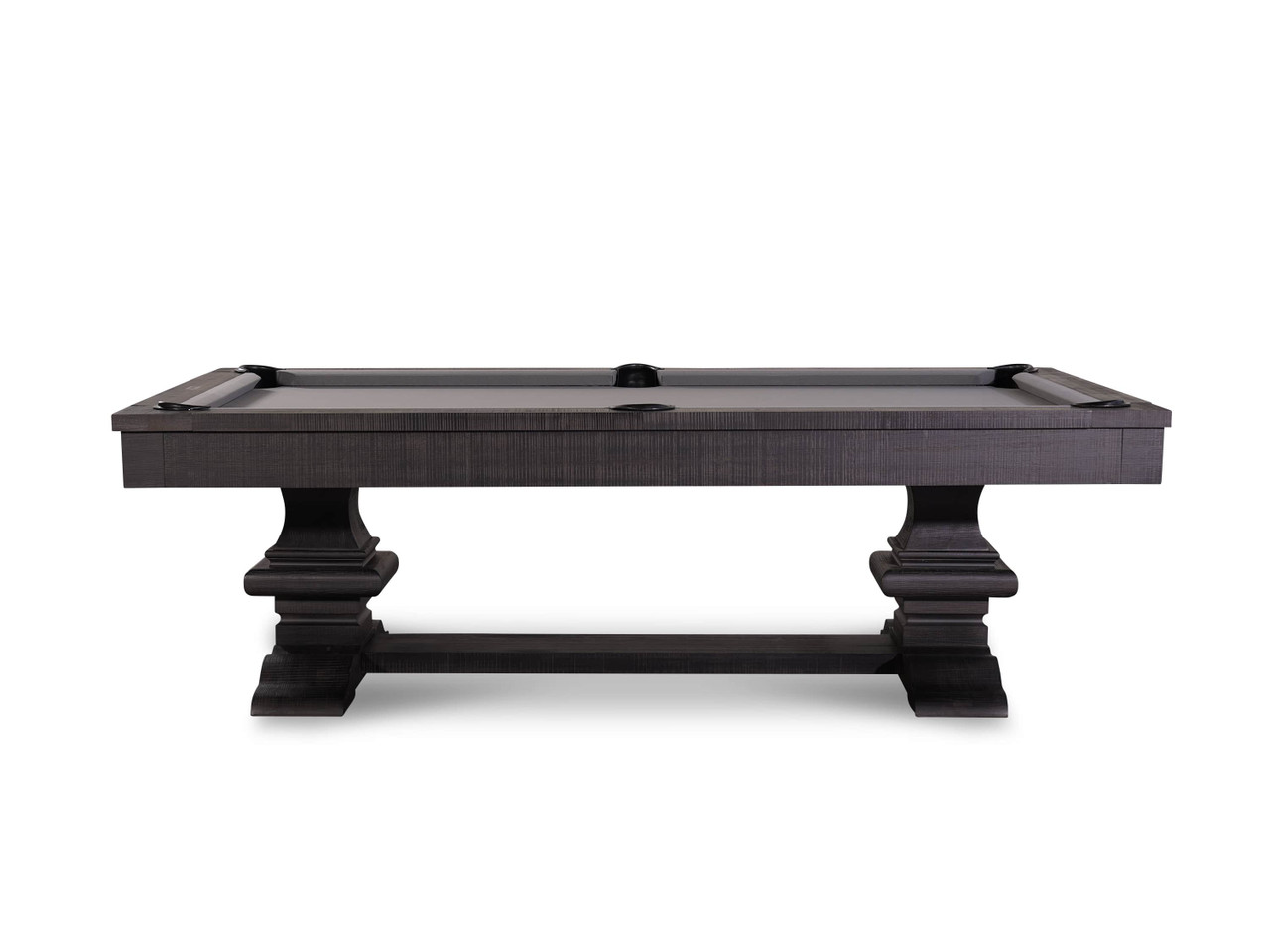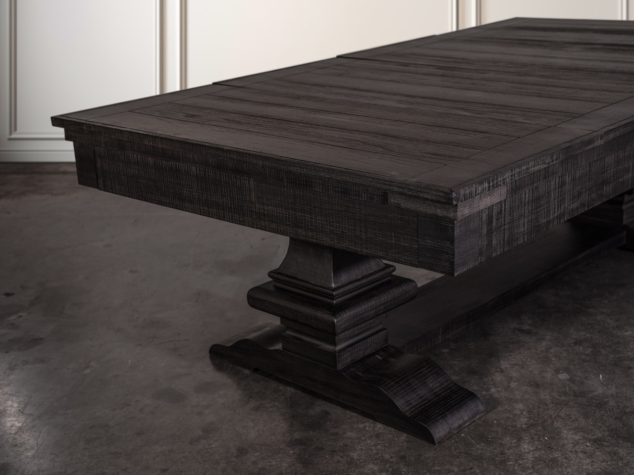 Picture this: a game room anchored in texture and contrast, where the Beaumont’s Distressed Black finish steals the spotlight against ambient lighting and clean architectural lines. The Beaumont fits effortlessly into elevated spaces—whether styled with industrial accents or layered woods. Its trestle base does more than support—it defines the entire room.