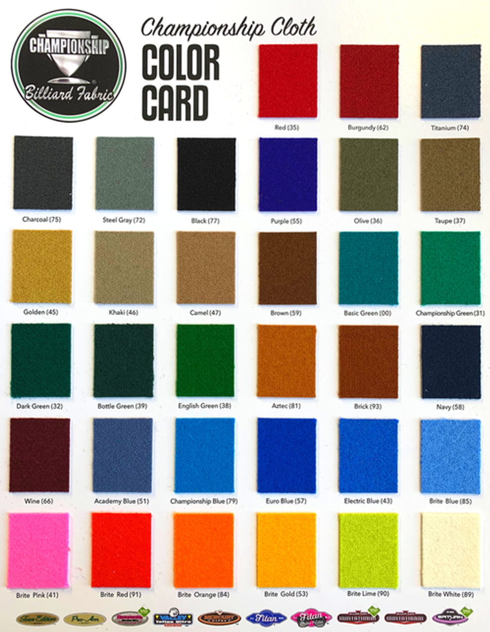 - Choice of Teflon spill-proof color felt by Championship for easy maintenance
