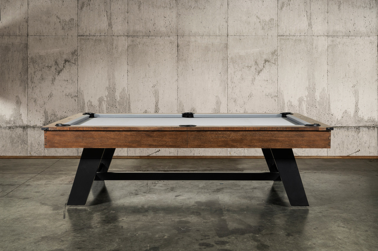Nixon Billiards Hunter Pool Table in Brushed Walnut with Black Metal Legs