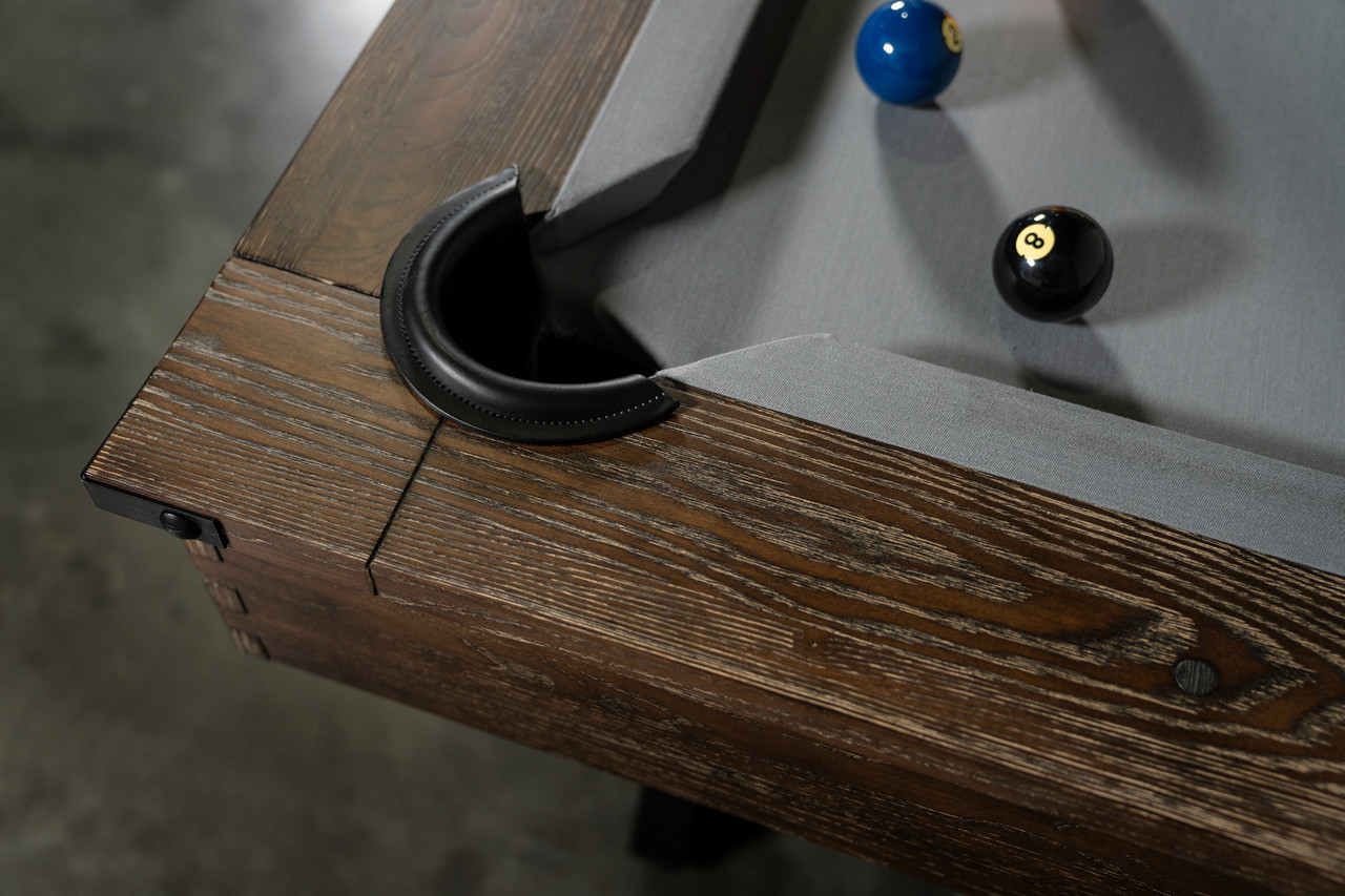 It’s not just about looks, though. This table is built for performance, with precision craftsmanship that elevates your game. The solid wood construction paired with a genuine 1” slate ensures a perfectly smooth playing surface every time. The attention to detail, from the finger-jointed rails to the laser-engraved Nixon Billiards logo and diamond billiard sights, all serve to make the Hunter Pool Table a product that reflects both skill and artistry.
