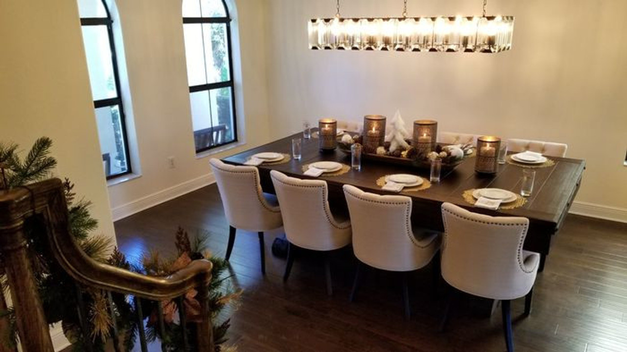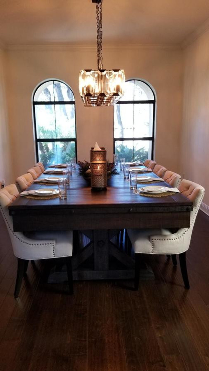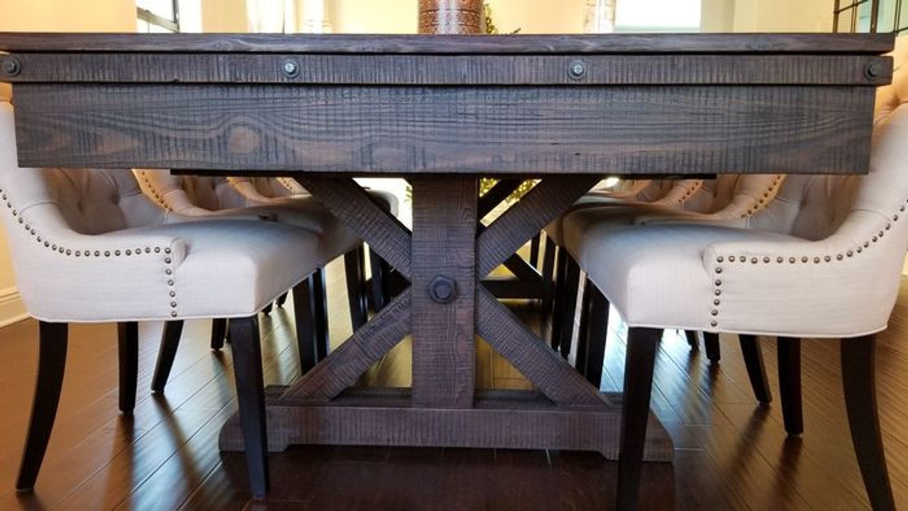 - Traditional-meets-modern farmhouse design with sturdy X-style pedestal legs
