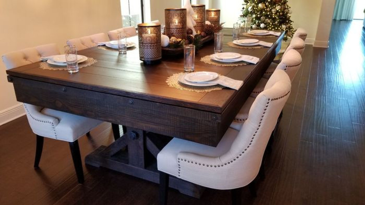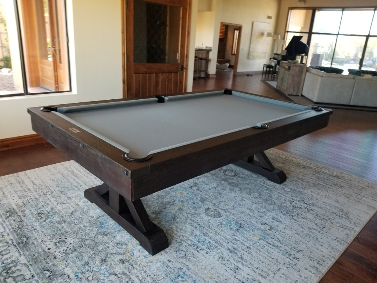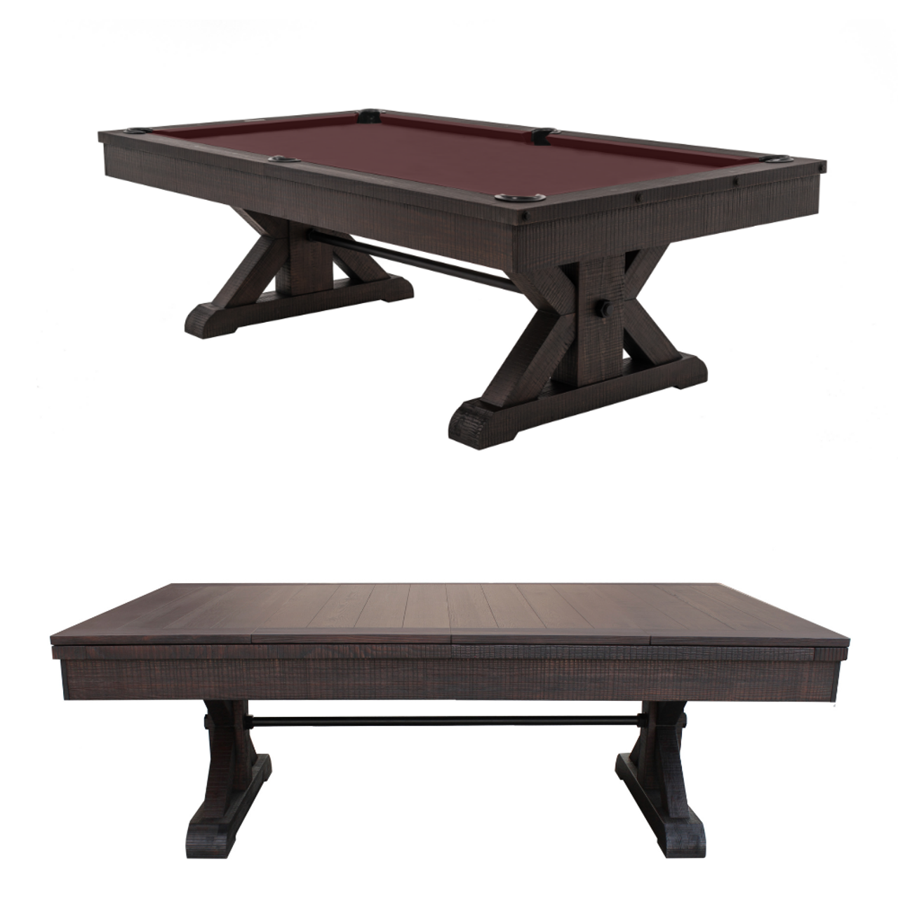 Some pieces aren’t just furniture—they become part of the family story. The Otis Slate Pool Table in Smokehouse finish by Plank & Hide is built for just that—gathering, sharing, and creating moments at home that stick with you. With its subtle distressing, farmhouse-inspired X-style pedestal legs, and rich, smoky brown tones, the Otis blends classic character with a modern rustic edge.