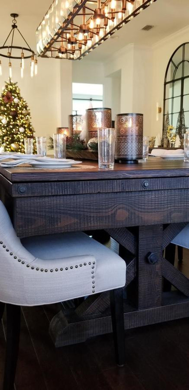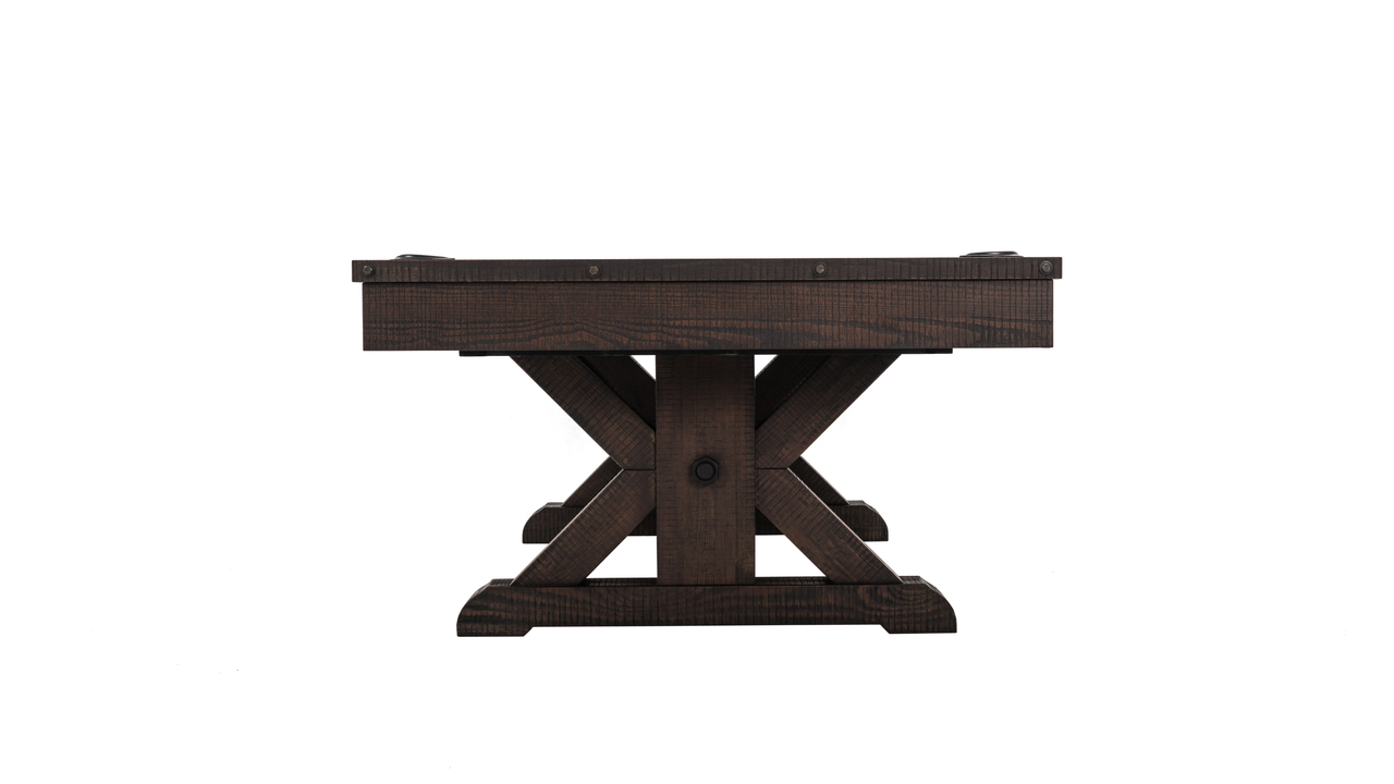 It’s made from solid Douglas Fir wood, featuring gently weathered rails and aprons for that just-right lived-in feel. The X-style legs bring balance and structure—making it a natural centerpiece whether it’s in a finished basement, family game room, or a warm and welcoming living space.
