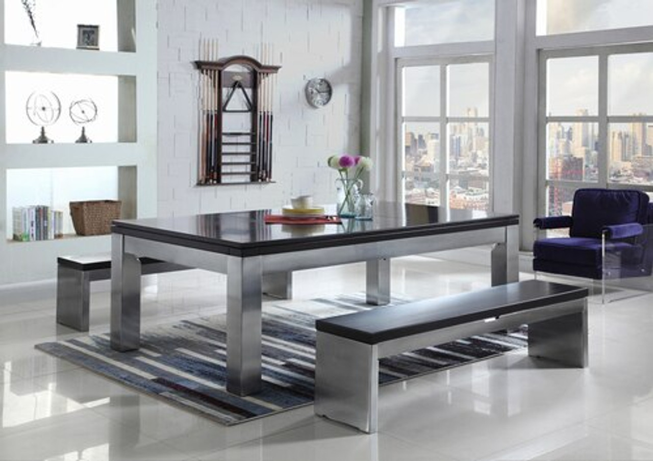 Playcraft Monaco Slate Pool Table with Dining Top | Gloss Black on Silver